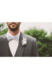 - Карманный платок-паше подбирается по цвету или текстуре к галстуку или к рубашке. Универсальный вариант — белый платок, изготовленный из шелка, льна или других смесовых материалов. Если вместо него используется цветок-бутоньерка, то его заказывают в сочетании с букетом невесты.